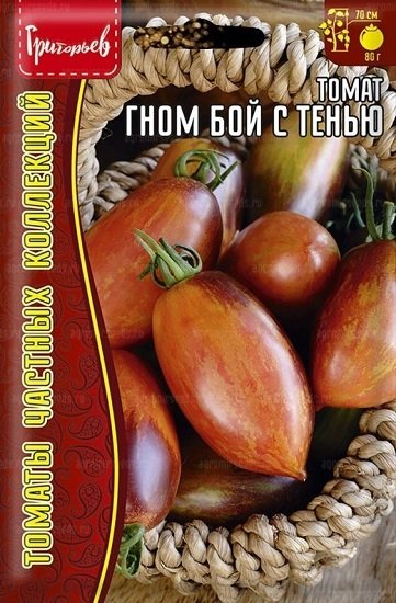 Среднеспелый, детерминантный высотой около 60-70 см сорт с удивительными плодам! Томаты имеют необычную форму вытянутых сливок с носиком, их длина составляет около 8 см, а вес примерно 80 г. Одна из самых интересных особенностей этого сорта - окраска плодов. Они имеют красный фон с оранжевыми и малиновыми разводами. От плодоножки по всей кожуре проходит практически чёрная полоса антоциана, которая мягко переходит в тёмно-бордовый оттенок.