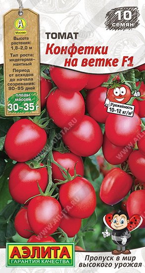 Плоды плотные темно-розовые, массой 30-35 г, собраны в сложные кисти. Гибрид характеризуется высокими вкусовыми качествами и устойчивостью к комплексу болезней.
