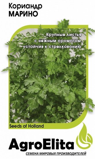 Среднеспелый сорт овощного кориандра. Период от полных всходов до начала сбора зелени 40-45 дней. Растение полупрямостоячее. Лист среднерассеченный, темно-зеленый. Обладает нежным ароматом. Масса одного растения 25-26 г.
