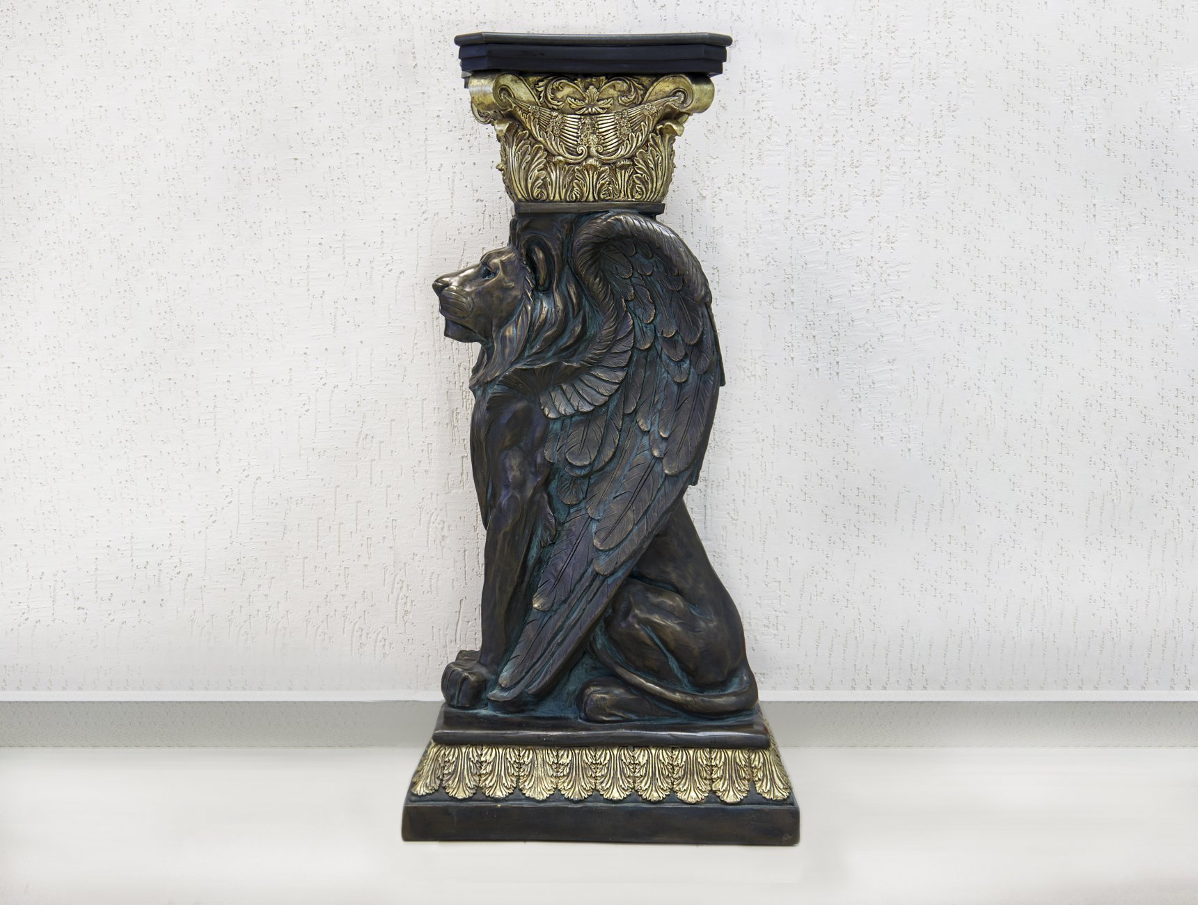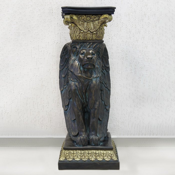 ПЬЕДЕСТАЛ со ЛЬВОМ из полирезина (размеры: 69.5х55х140 см) под медь с золотом