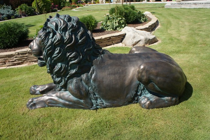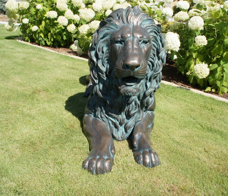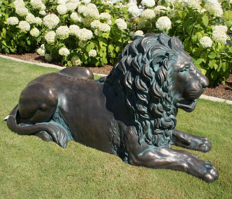 Большой лежачий лев превосходно впишется как рядом с парадным входом, так и посреди газона.