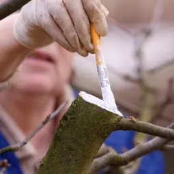 Очень важно защитить деревья и кустарники от солнечных ожогов, для этого необходимо приобрести побелку или краску для деревьев.