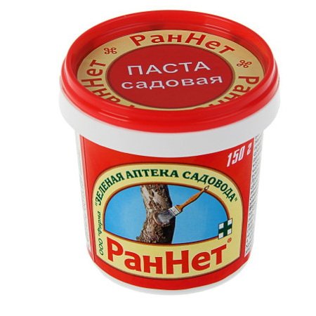 Специальная садовая паста-замазка, которая гораздо удобнее садового вара в применении. Садовая паста РанНет не застывает в холодную погоду, легко наносится на срезы кисточкой. РанНет предотвращает соковыделения в местах срезов деревьев и кустарников