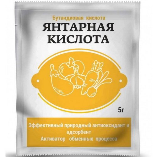 Янтарная кислота способствует накапливанию физиологически активных веществ и витаминов. Благодаря ей растения становятся устойчивыми к заболеваниям.