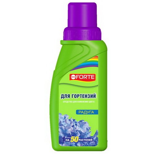 Концентрированное средство Bona Forte "Радуга" используется для изменения и поддержания голубого цвета крупнолистных гортензий.