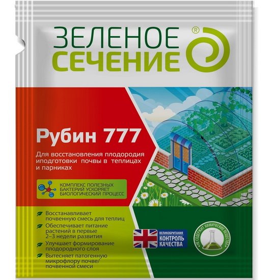 Биопрепарат Рубин 777 50г Зеленое Сечение не содержит химические вещества.