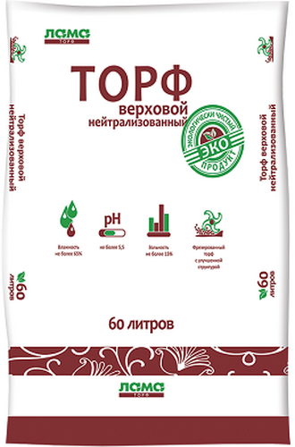Торф верховой нейтрализованный обладает повышенной буферностью и антисептическими свойствами, оптимальными водно-воздушными, водоудерживающими, поглотительными свойствами, пористостью, что создает оптимальные условия для корней растений. Обладает бактерицидными свойствами.