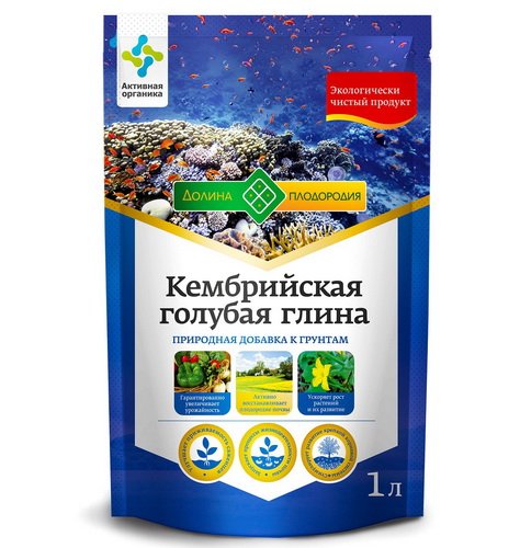 Кембрийская голубая глина, очищенная, в форме мелкодисперсного порошка, является ценным природным компонентом и природным источником питания минералами и другими компонентами в доступной для растений форме, обладает наибольшими восстановительными свойствами для плодородия почвы.